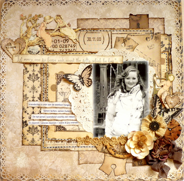 Romy wat heb je weer een waanzinnig mooie LO gemaakt!!Supergaaf! En zulk prachtig papier!! Leuke uitdaging ook trouwens:)